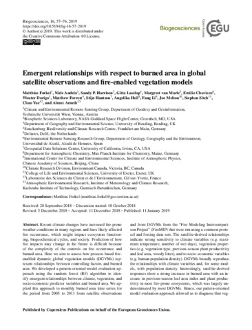 Forkel, M., Andela, N., Harrison, S. P. ORCID: https://orcid.org/0000-0001-5687-1903, Lasslop, G., van Marle, M., Chuvieco, E., Dorigo, W., Forrest, M., Hantson, S., Heil, A., Li, F., Melton, J., Sitch, S., Yue, C. and Arneth, A.
