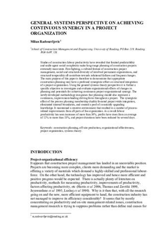 Radosavljevic, M. (2007) General systems perspective on achieving continuous synergy in a project organisation. In: Construction Management and Economics 25th Anniversary Conference, 16-18 July 2007, University of Reading, UK.