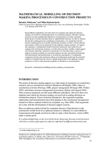 Nishiyama, D. and Radosavljevic, M. (2009) Mathematical modelling of decision making processes in construction projects. In: 25th Annual ARCOM Conference, 7-9 September, Nottingham, UK, pp. 85-94.