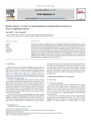 Rocket species (Eruca spp. and Diplotaxis spp.) are becoming increasingly important leafy salad crops across the world. Numerous scientific research papers have been published in recent years surrounding the potential health benefits associated with phytochemicals contained in leaves, such as flavonoids and isothiocyanates. Other research of note has also been conducted into the unique taste and flavour properties of leaves, which can be hot, peppery, bitter, and sweet depending upon the genotype and phytochemical composition. While research into these aspects is increasing, some studies lack cohesion and in-depth knowledge of commercial breeding and cultivation practices that makes interpretation and application of results difficult. This review draws together all significant research findings in these crops over the last five years, and highlights areas that require further exploration and/or resolution. We also advise on experimental considerations for these species to allow for more meaningful utilisation of findings in the commercial sector.