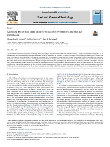 Lobach, A. R., Roberts, A. and Rowland, I. R. (2019) Assessing the in vivo data on low/no-calorie sweeteners and the gut microbiota. Food and Chemical Toxicology, 124. pp. 385-399. ISSN 0278-6915 doi: 10.1016/j.fct.2018.12.005