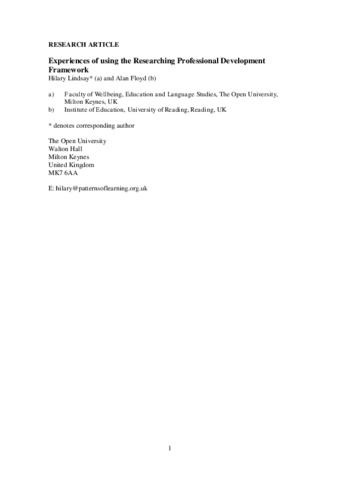 Experiences of using the researching professional development framework