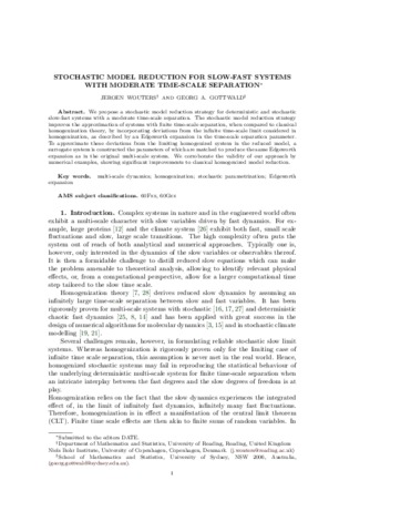 Wouters, J. orcid id iconORCID: https://orcid.org/0000-0001-5418-7657 and Gottwald, G. A. (2019) Stochastic model reduction for slow-fast systems with moderate time-scale separation. Multiscale Modeling and Simulation : a SIAM interdisciplinary journal, 17 (4). pp. 1172-1188. ISSN 1540-3459 doi: 10.1137/18M1219965