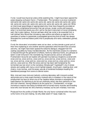 A commission by Trifle magazine to write a review of the film 'I, Frankenstein' (Beattie, 2014), using only words from 'Frankenstein' (Shelley, 1831), and post it on Rotten Tomatoes website.