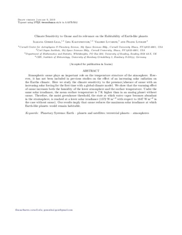 Gómez-Leal, I., Kaltenegger, L., Lucarini, V. orcid id iconORCID: https://orcid.org/0000-0001-9392-1471 and Lunkeit, F. (2019) Climate sensitivity to ozone and its relevance on the habitability of Earth-like planets. Icarus, 321. pp. 608-618. ISSN 0019-1035 doi: 10.1016/j.icarus.2018.11.019