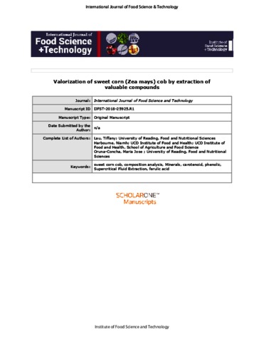 Valorization of sweet corn (Zea mays) cob by extraction of
