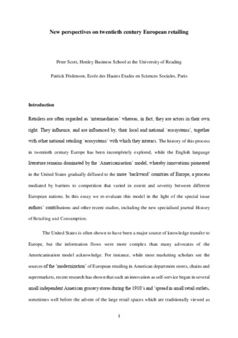 Retailers are often regarded as ‘intermediaries’, whereas in fact they are actors in their own right. They influence, and are influenced by, their local and national ‘ecosystems’, together with other national retailing ‘ecosystems’ with which they interact. The history of this process in 20th-century Europe has been incompletely explored, while the English-language litera- ture remains dominated by the ‘Americanisation’ model, whereby innovations pioneered in the United States gradually diffused to the more ‘backward’ countries of Europe, a process mediated by barriers to competition that varied in extent and severity between different European nations. In this essay, we re-evaluate this model in the light of the special issue authors’ contributions and other recent studies, including the new specialised journal History of Retailing and Consumption. The United States is often shown to have been a major source of knowledge transfer to Europe, but the information flows were more complex than many advocates of the Americanisation model acknowledge. For instance, while most marketing scholars see the sources of the ‘modernisation’ of European retailing in American department stores, chains and supermarkets, recent research has shown that such an innovation as self-service began in several small independent American grocery stores during the 1910s and ‘spread in small retail outlets, sometimes well before the advent of the large retail spaces which are tradi- tionally viewed as the origin of the self-service economy’. 1 Moreover, American-inspired formats were not always appropriate welfare-maximising models for European countries (and, arguably, in some cases, such as regional shopping malls, even for the United States).