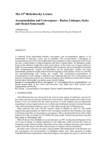 The 13th Bielschowsky lecture: accommodation and convergence – ratios, linkages, styles and mental somersaults.