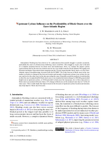 Upstream cyclone influence on the predictability of block onsets over the Euro-Atlantic region.
