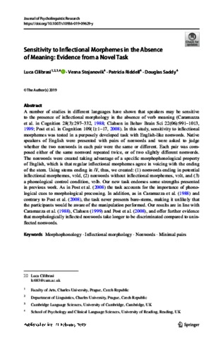 Sensitivity to inflectional morphemes in the absence of meaning: evidence from a novel task.