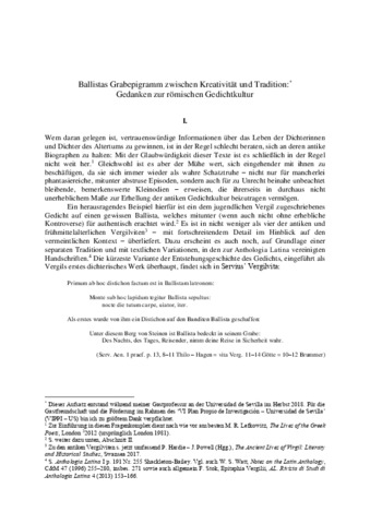 Kruschwitz, P. (2019) Ballistas Grabepigramm zwischen Kreativität und Tradition: Gedanken zur römischen Gedichtkultur. Gymnasium, 126 (2). pp. 147-166. ISSN 2567-6555