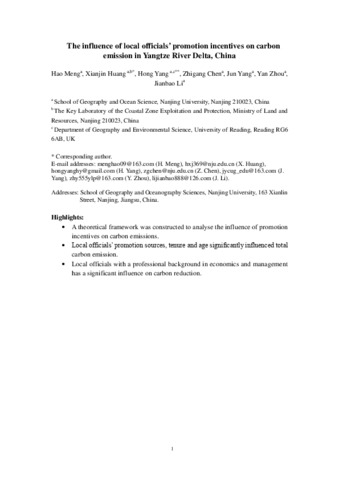 The influence of local officials' promotion incentives on carbon emission in Yangtze River Delta, China.