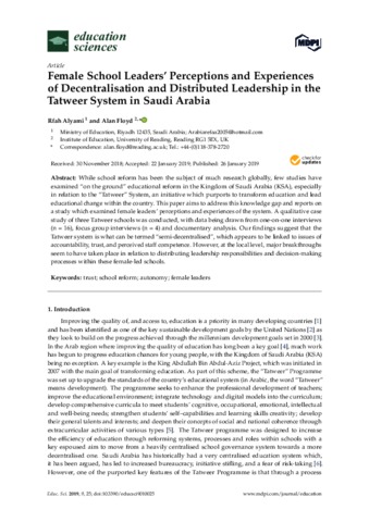 While school reform has been the subject of much research globally, few studies have examined “on the ground” educational reform in the Kingdom of Saudi Arabia (KSA), especially in relation to the “Tatweer” System, an initiative which purports to transform education and lead educational change within the country. This paper aims to address this knowledge gap and reports on a study which examined female leaders’ perceptions and experiences of the system. A qualitative case study of three Tatweer schools was conducted, with data being drawn from one-on-one interviews(n = 16), focus group interviews (n = 4) and documentary analysis. Our findings suggest that the Tatweer system is what can be termed “semi-decentralised”, which appears to be linked to issues of accountability, trust, and perceived staff competence. However, at the local level, major breakthroughs seem to have taken place in relation to distributing leadership responsibilities and decision-making processes within these female-led schools.