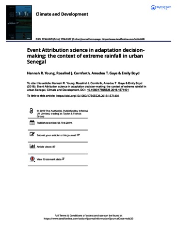Event attribution science in adaptation decision-making: the context of extreme rainfall in urban Senegal.