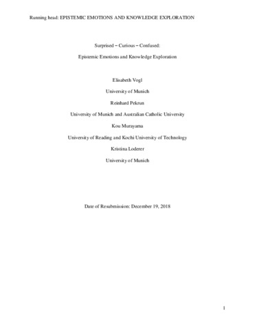 Vogl, E., Pekrun, R., Murayama, K. and Loderer, K. (2020) Surprised – curious – confused: epistemic emotions and knowledge exploration. Emotion, 20 (4). pp. 625-641. ISSN 1931-1516 doi: 10.1037/emo0000578
