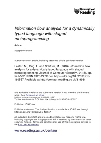 Information flow analysis for a dynamically typed language with staged metaprogramming.