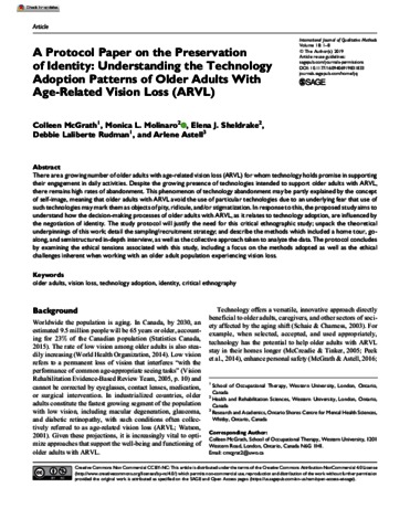 A protocol paper on the preservation of identity: understanding the technology adoption patterns of older adults with age-related vision loss (ARVL).
