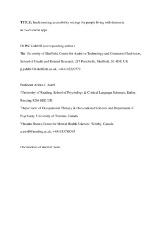 Joddrell, P. and Astell, A. J. orcid id iconORCID: https://orcid.org/0000-0002-6822-9472 (2019) Implementing accessibility settings for people living with dementia in touchscreen apps. Gerontology, 65 (5). pp. 560-570. ISSN 0304-324X doi: 10.1159/000498885