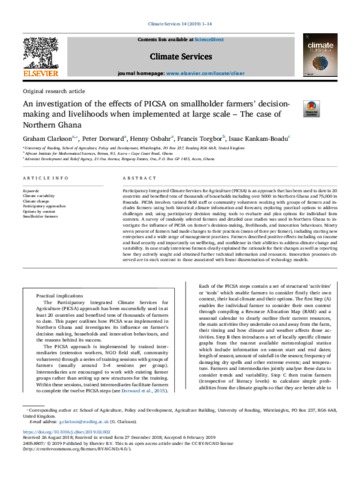 An investigation of the effects of PICSA on smallholder farmers’ decision-making and livelihoods when implemented at large scale – the case of Northern Ghana.