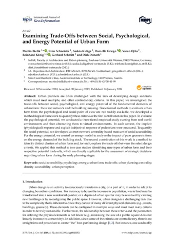 Examining trade-offs between social, psychological, and energy potential of urban form.