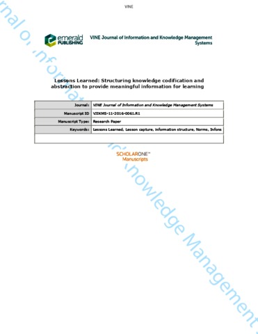 Lessons learned: structuring knowledge codification and abstraction to provide meaningful information for learning.