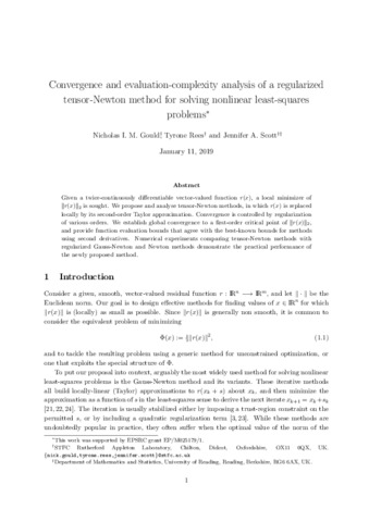 Convergence and evaluation-complexity analysis of a regularized tensor-Newton method for solving nonlinear least-squares problems.