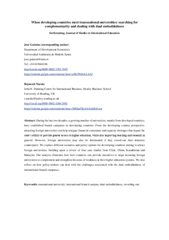 When developing countries meet transnational universities: searching for complementarity and dealing with dual embeddedness.