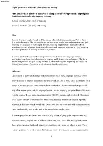 ‘It’s like having a test but in a fun way’: young learners’ perceptions of a digital game-based assessment of early language learning.