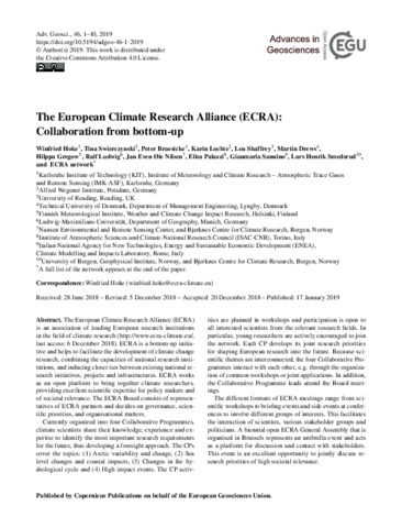 The European Climate Research Alliance (ECRA): collaboration from bottom-up.