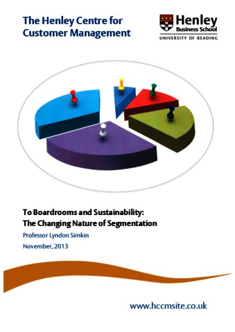 Simkin, L., (2013) To boardrooms and sustainability: the changing nature of segmentation. Report. Henley Centre for Customer Management