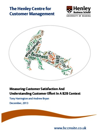 Harrington, T. and Bryan, A., (2013) Measuring customer satisfaction and understanding customer effort in a B2B context. Report. Henley Centre for Customer Management