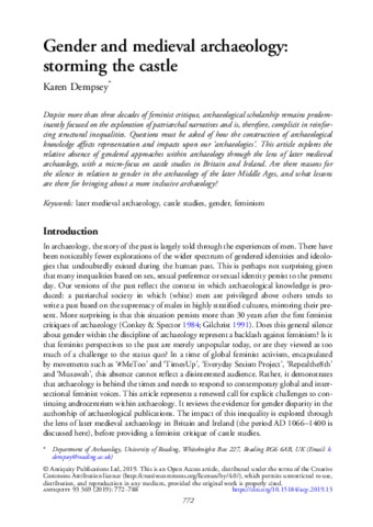 Dempsey, K. (2019) Gender and Medieval archaeology: storming the castle. Antiquity, 93 (369). pp. 772-788. ISSN 0003-598X doi: 10.15184/aqy.2019.13