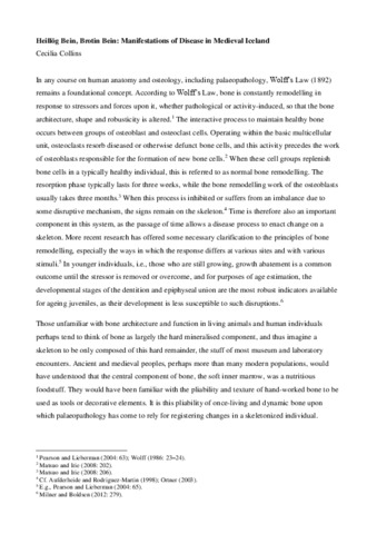 Collins, C. (2018) Heillog Bein, Brotin Bein: manifestations of disease in Medieval Iceland. In: Connelly, E. and Künzel, S. (eds.) New Approaches to Disease, Disability and Medicine in Medieval Europe. Archaeopress, pp. 109-125. ISBN 9781784918835