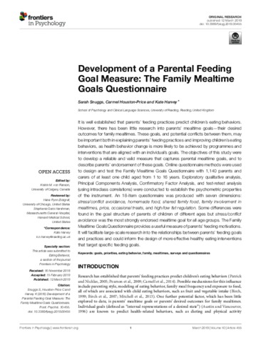 Development of a parental feeding goal measure: the family mealtime goals questionnaire.
