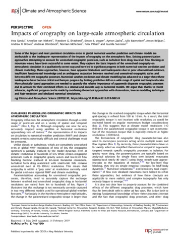 Sandu, I., van Niekerk, A., Shepherd, T. G. orcid id iconORCID: https://orcid.org/0000-0002-6631-9968, Vosper, S. B., Zadra, A., Bacmeister, J., Beljaars, A., Brown, A. R., Dörnbrack, A., McFarlane, N., Pithan, F. and Svensson, G. (2019) Impacts of orography on large-scale atmospheric circulation. npj Climate and Atmospheric Science, 2. 10. ISSN 2397-3722 doi: 10.1038/s41612-019-0065-9