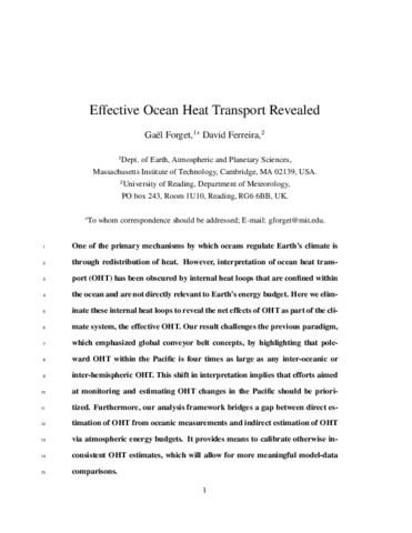 Heat redistribution is one of the main mechanisms by which oceans regulate Earth’s climate. Analyses of ocean heat transport tend to emphasize global-scale seawater pathways and concepts such as the great ocean conveyor belt. However it is the divergence or convergence of heat transport within an oceanic region, rather than the origin or destination of seawater transiting through that region, which is most immediately relevant to Earth’s heat budget. Here we use a recent gridded estimate of ocean heat transport to reveal the net effect on Earth’s heat budget, the ‘effective’ ocean heat transport, by removing internal ocean heat loops that have obscured the interpretation of measurements. The result demonstrates the overwhelming predominance of the tropical Pacific which exports four times as much heat as is imported in the Atlantic and Arctic. It also highlights the unique ability of the Atlantic and Indian Oceans to transport heat across the Equator – Northward and Southward, respectively. However effective inter-ocean heat transports are smaller than expected, suggesting that global-scale seawater pathways only play a minor role in Earth’s heat budget.