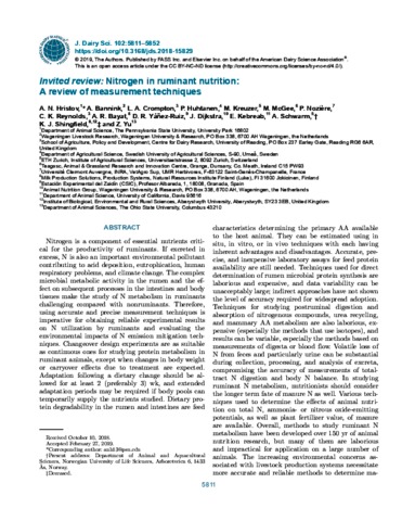 Hristov, A. N., Bannik, A., Crompton, L. A., Huhtanen, P., Kreuzer, M., McGee, M., Nozière, P., Reynolds, C. K. ORCID: https://orcid.org/0000-0002-4152-1190, Bayat, A. R., Yanez-Ruiz, D. R., Dijkstraj, J., Kebreabk, E., Schwarmf, A., Shingfiled, K. J. and Yu, Z.