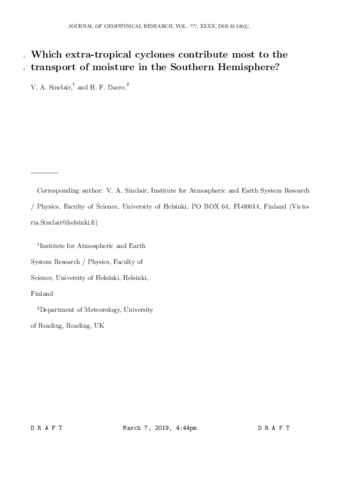 Sinclair, V. A. and Dacre, H. F. orcid id iconORCID: https://orcid.org/0000-0003-4328-9126 (2019) Which extratropical cyclones contribute most to the transport of moisture in the southern hemisphere? JGR Atmospheres, 124 (5). pp. 2525-2545. ISSN 2169-8996 doi: 10.1029/2018JD028766