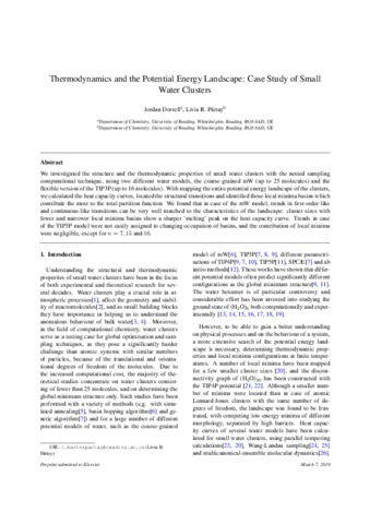Dorrell, J. and Partay, L. B. (2019) Thermodynamics and the potential energy landscape: case study of small water clusters. Physical Chemistry Chemical Physics, 21. pp. 7305-7312. ISSN 1463-9076 doi: 10.1039/C9CP00474B
