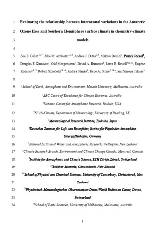 Evaluating the relationship between interannual variations in the Antarctic ozone hole and Southern Hemisphere surface climate in chemistry-climate models.