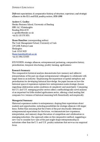 Different expectations: a comparative history of structure, experience, and strategic alliances in the U.S. and U.K. poultry sectors, 1920-1990.