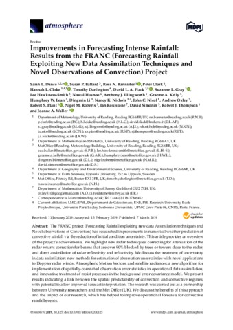 Improvements in forecasting intense rainfall: results from the FRANC (forecasting rainfall exploiting new data assimilation techniques and novel observations of convection) project.