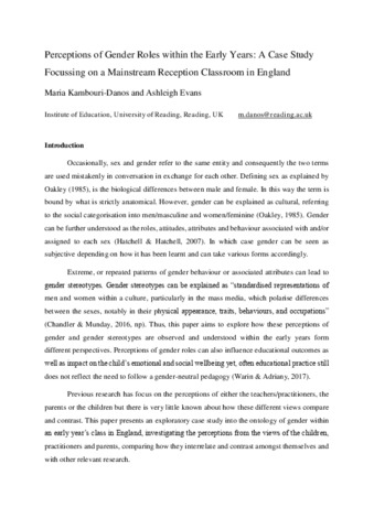 Extreme, or repeated patterns of gender behaviour can lead to gender stereotypes. This study explores how these stereotypes are observed and understood within the early years, as they can influence educational outcomes and affect children's emotional wellbeing.