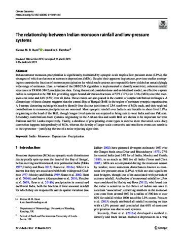 The relationship between Indian monsoon rainfall and low-pressure systems.