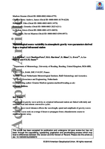 Meteorological source variability in atmospheric gravity wave parameters derived from a tropical infrasound station.