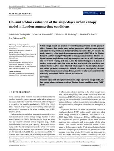On‐ and off‐line evaluation of the single‐layer urban canopy model in London summertime conditions.