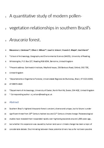 A quantitative study of modern pollen-vegetation relationships in southern Brazil's Araucaria forest.