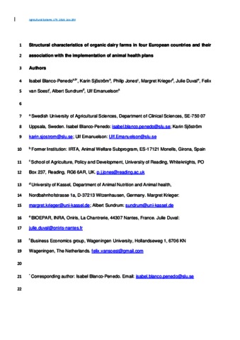 Structural characteristics of organic dairy farms in four European countries and their association with the implementation of animal health plans.
