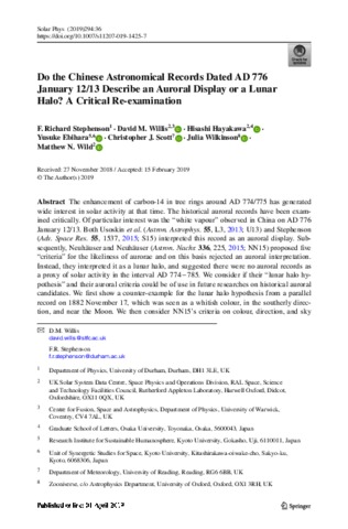 Stephenson, F. R., Willis, D. M., Hayakawa, H., Ebihara, Y., Scott, C. J.