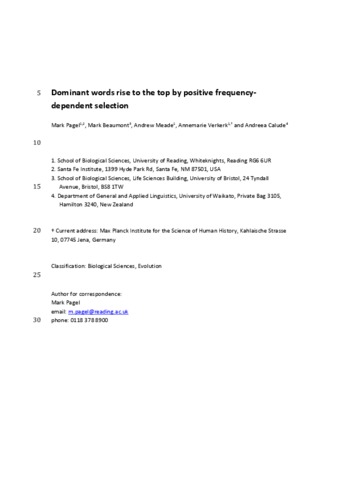 Dominant words rise to the top by positive frequency-dependent selection.